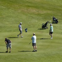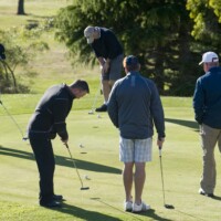 GPCAPT Russel Sowden and FLTLT Dave Ray host a number of sponsor representatives for a game of Ambross at the 2011 RNZAF Society Golf competition.